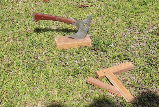 The size was, as previously stated, just about perfect. Enough for leverage and chopping power in a swing, yet short enough to be handy and carryable.