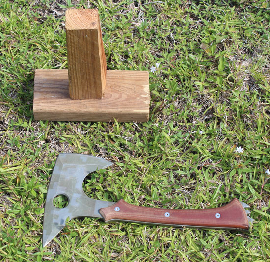 I became part of a pass around of an Omnivore Blade-Works tomahawk on a forum I’ve been a part of since inception (Usualsuspect.net). Two packages of hawks went out in June of 2011 and I after a true odyssey the hawk finally made it to me in May of 2013! I am the eleventh person to deal with it/test it. It was well used by the time it arrived to me.