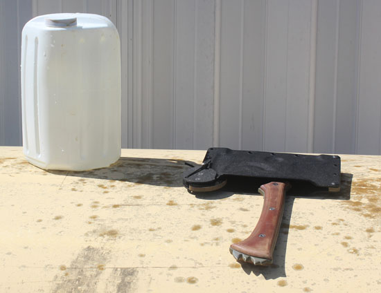 I have to say I was pretty impressed overall! Certain things I don’t like, and I’ll tell you about them, but this thing chops AWESOMELY! Please note: I did NOT sharpen this hawk or touch up the edge in any way shape or form! At least 10 other people have had this before me and I was able to slice completely thru a gallon jug of water! It holds an edge VERY well! A testament to the steel and the design and maker!