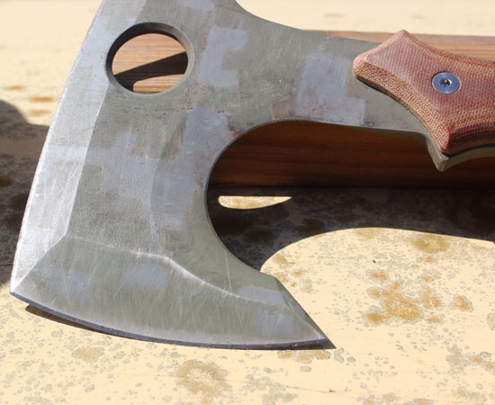 Having the edge go all around is a cool design feature but impractical in my opinion. I’d like to see it under the beard and to the center of the top of the blade, for hook cuts and back cuts,that way you can still choke up on the head of the blade. No edge at all on the back part.
