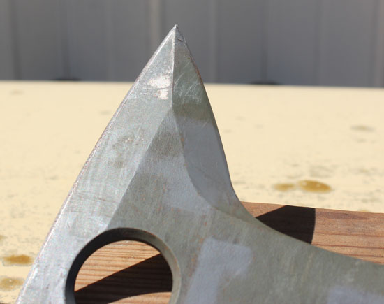 I’m not a huge fan of the popular spike on the back of a hawk. This is purely from my martial arts back ground as I don’t want anything on my weapon pointed at me that my adversary can potentialy use against me. It’s also one of my favorite things to do someone who has a spike hawk. Choke up on them with the haft of mine and force their own blade at/on them.