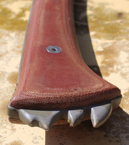 I don’t really dislike these, they look cool but I don’t really see them serving a purpose. I know they are designed for butt strikes but as rounded as they are (for safety, I guess) they wouldn’t do much damage as the hawk really isn’t designed to strike with that end. The maker has said he created them to look like dog’s teeth.