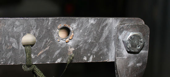 The side bars fared much worse, with two perforations to one arm in particular. The damage to the stand can be mostly attributed stray rounds ricocheting from the lanes next to me on either side